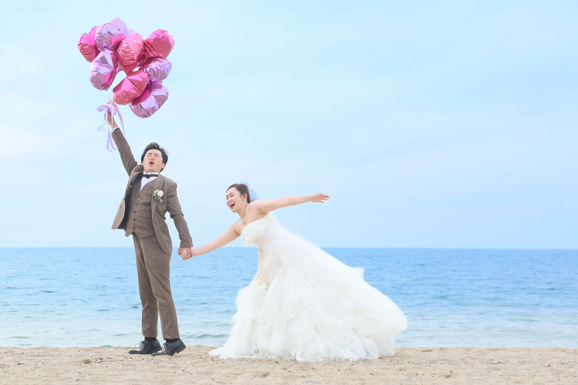雲一つない晴天の下でお洒落で可愛いお二人とロケーション撮影です ビーチでのサプライズは大成功♡♡感動的な...