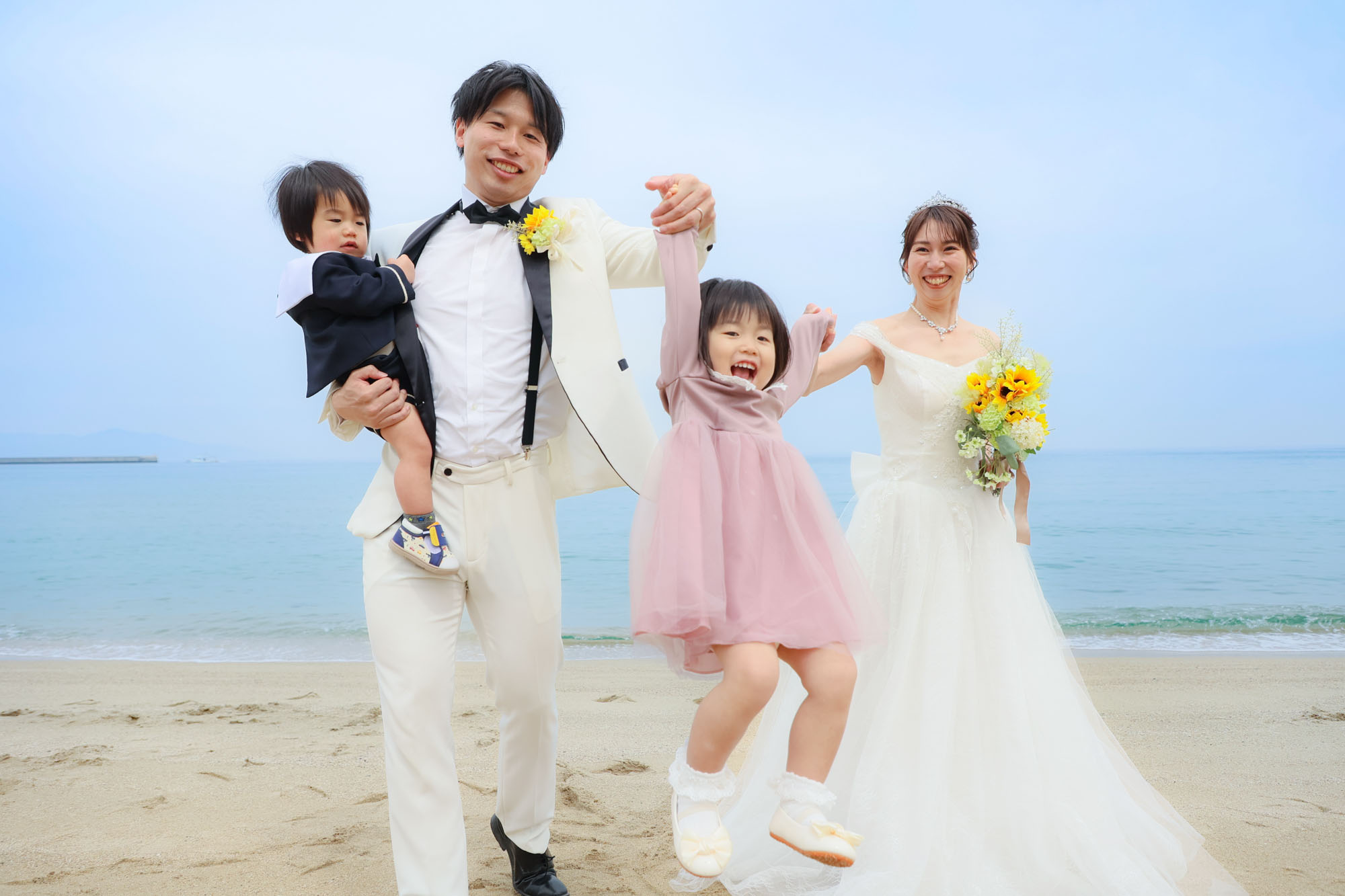 とっても楽しそうな笑顔が微笑ましいファミリーとウエディングロケーション撮影です お茶目な...
