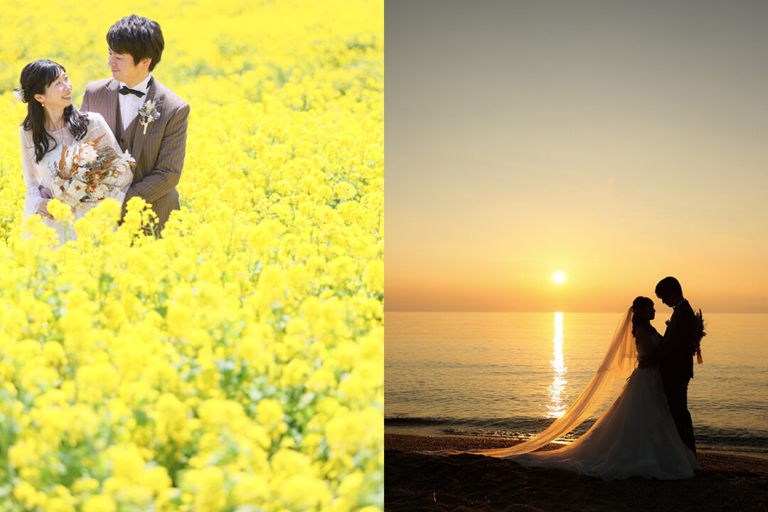 【淡路島本店で移動料金込 リーズナブル】花畑&ビーチどちらも撮影できる満足プラン