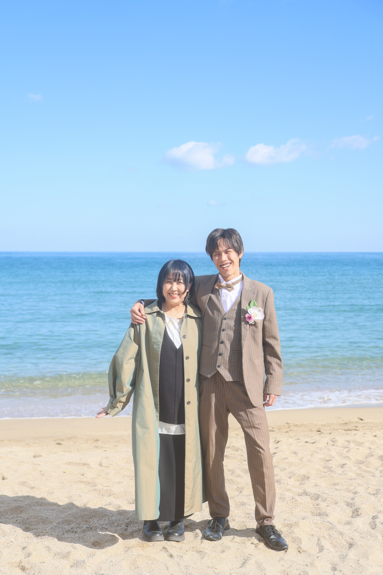 とっても暖かいご家族と一緒にビーチ・神社での撮影の様子です