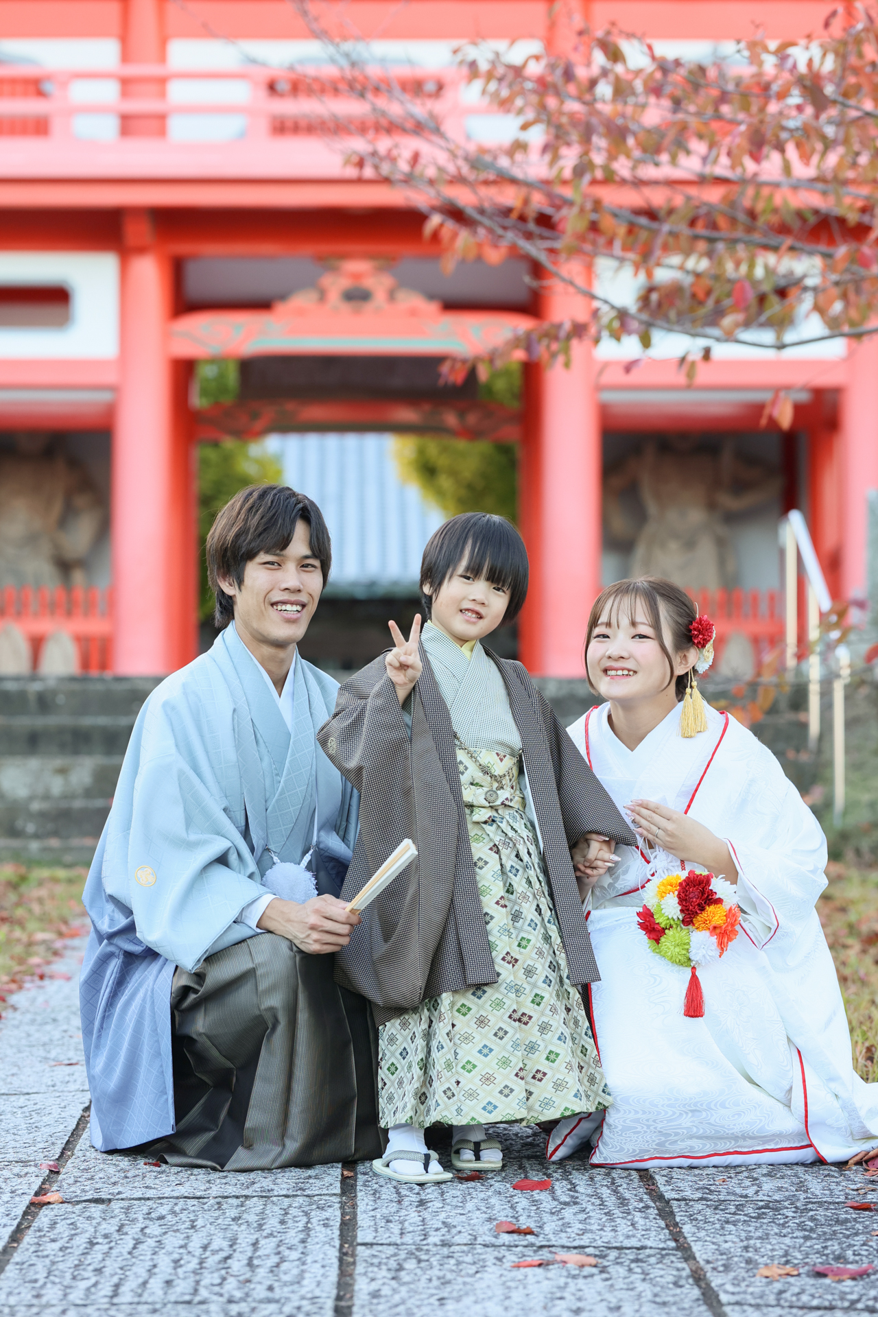 3人で和装に着替えてのショット♡素敵な家族記念になりますね