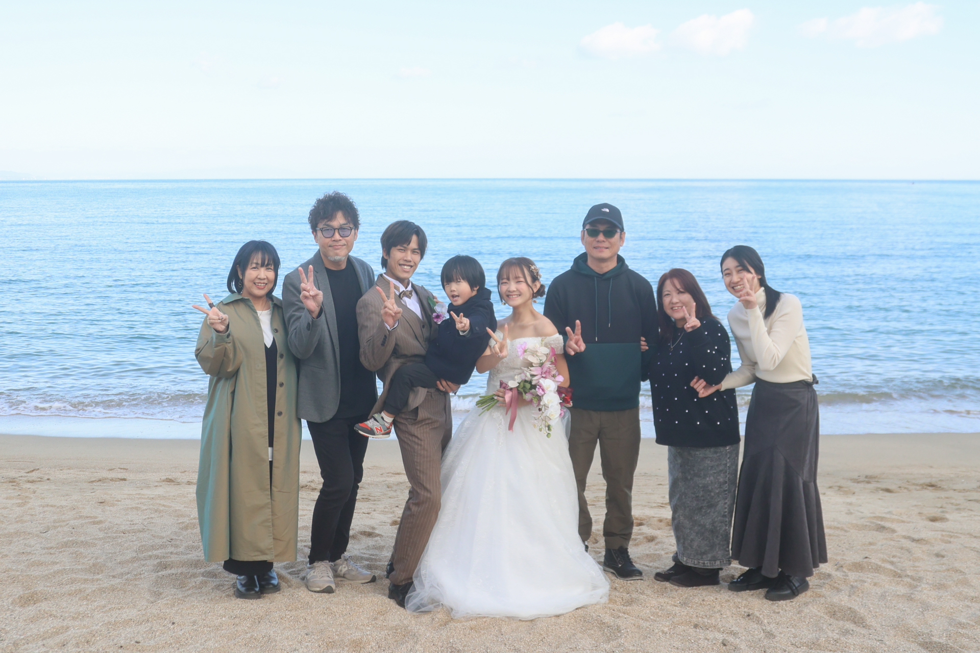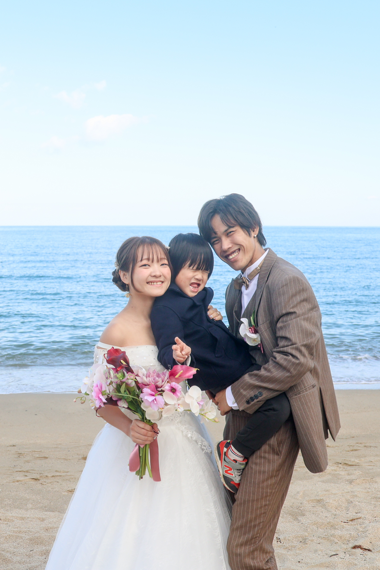 とっても暖かいご家族と一緒にビーチ・神社での撮影の様子です