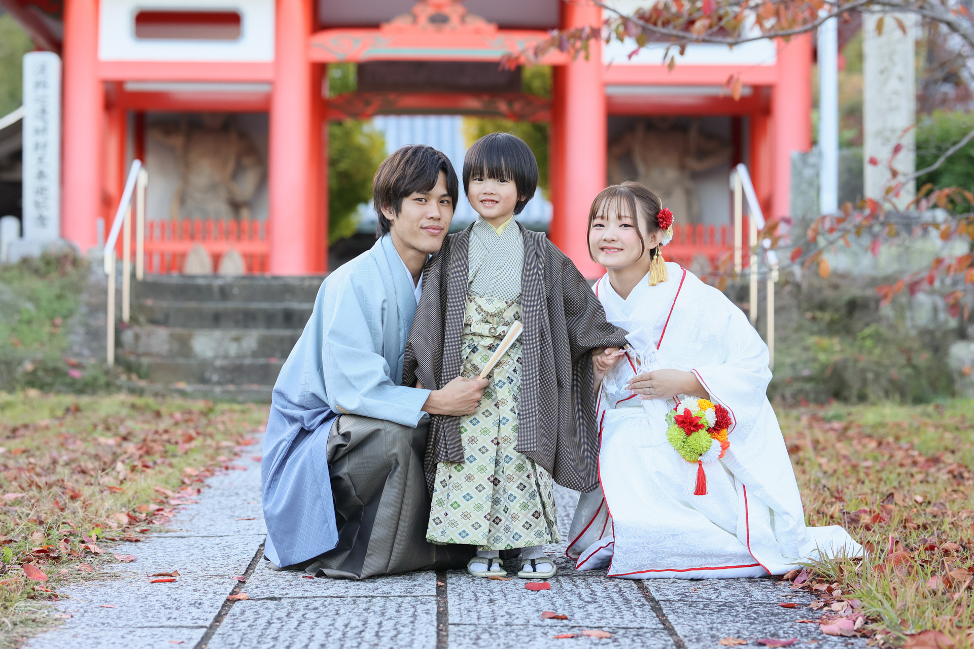 3人で和装に着替えてのショット♡素敵な家族記念になりますね