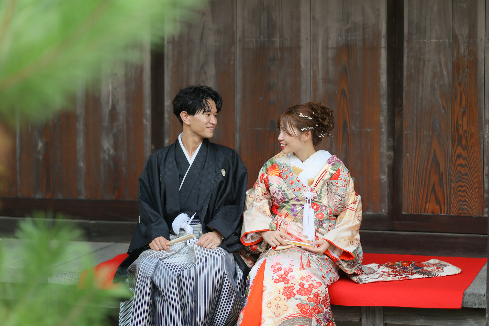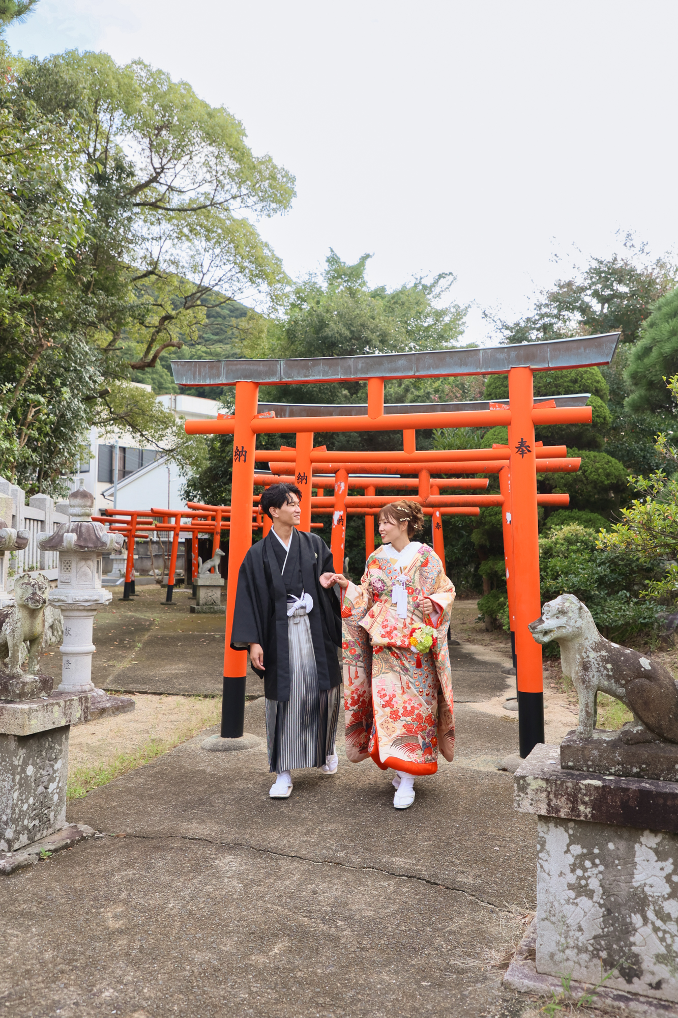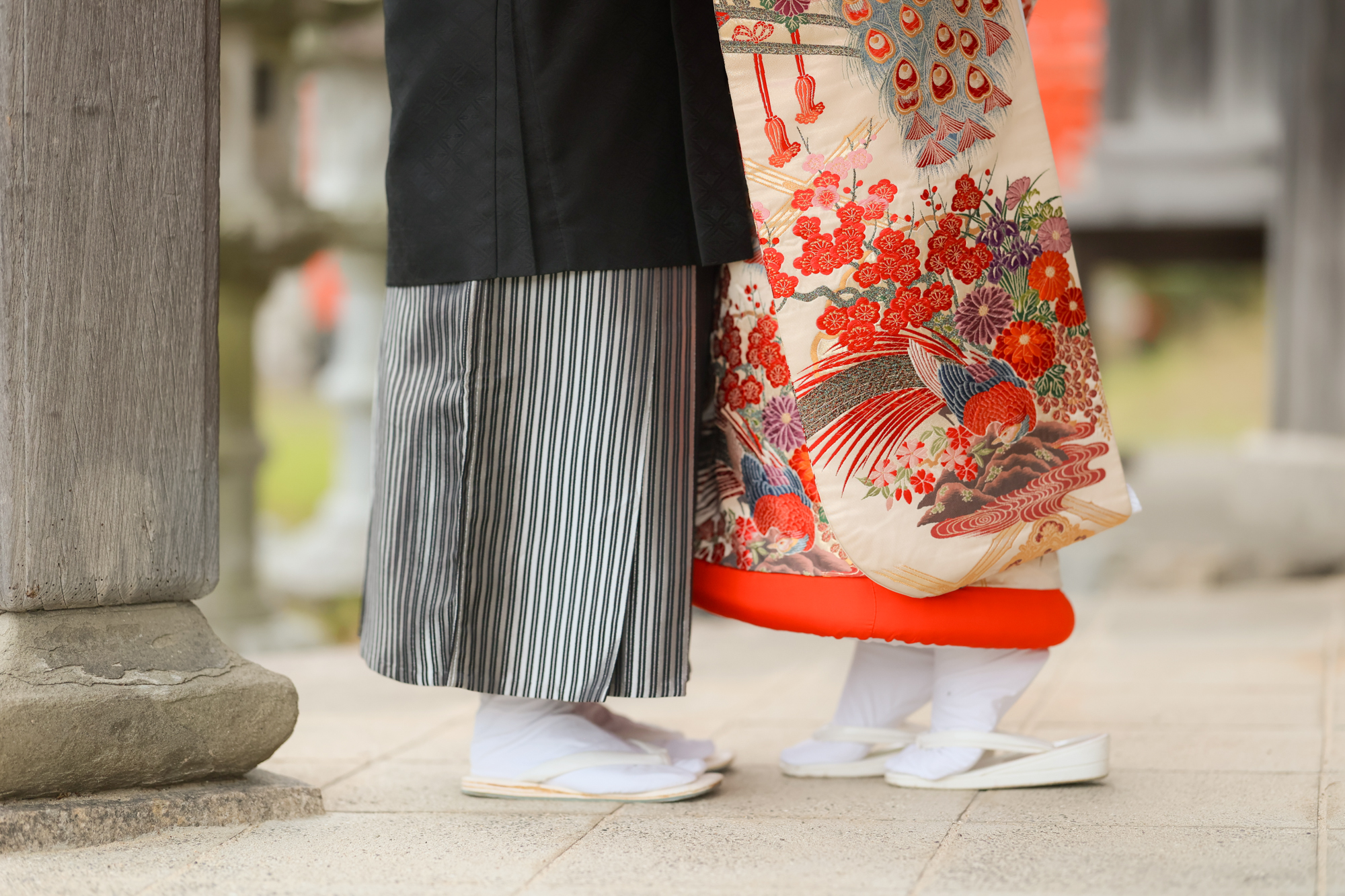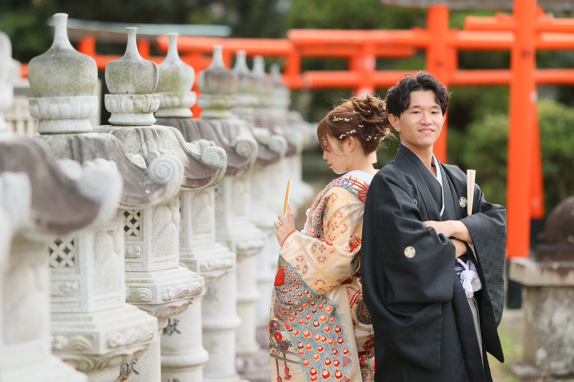 華やかな和装姿がとてもお似合いのお二人と神社ロケーション撮影からスタートです