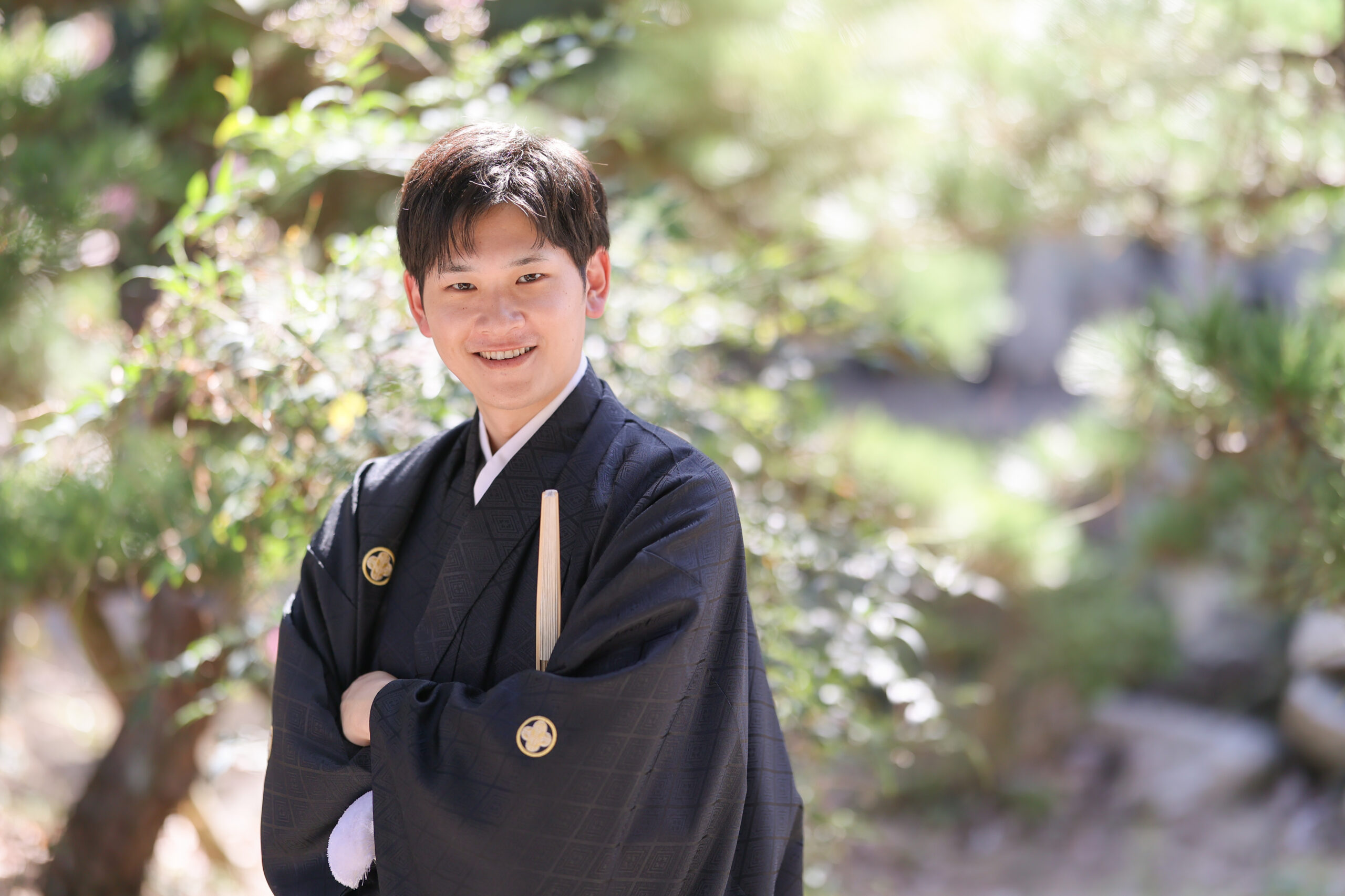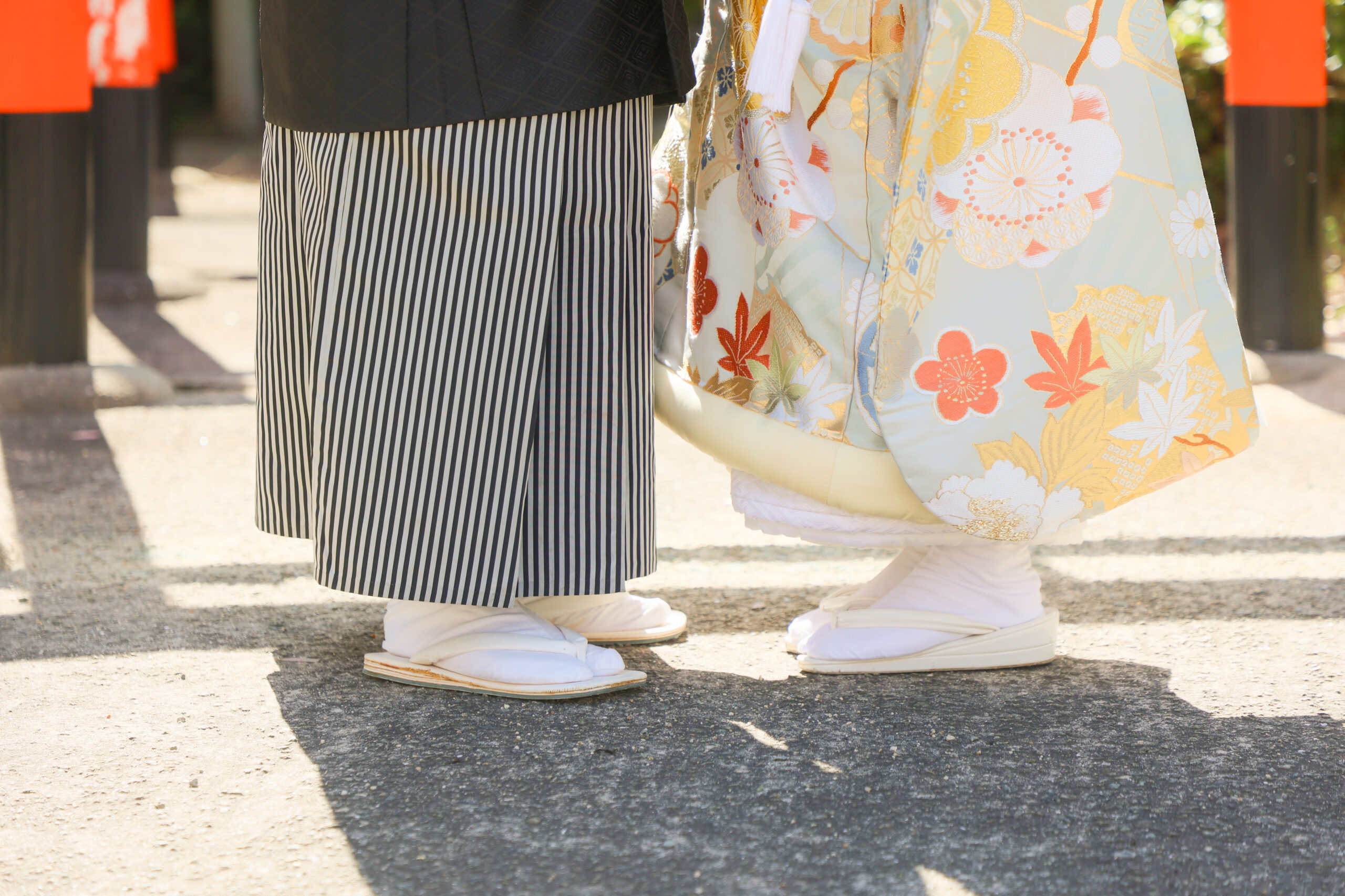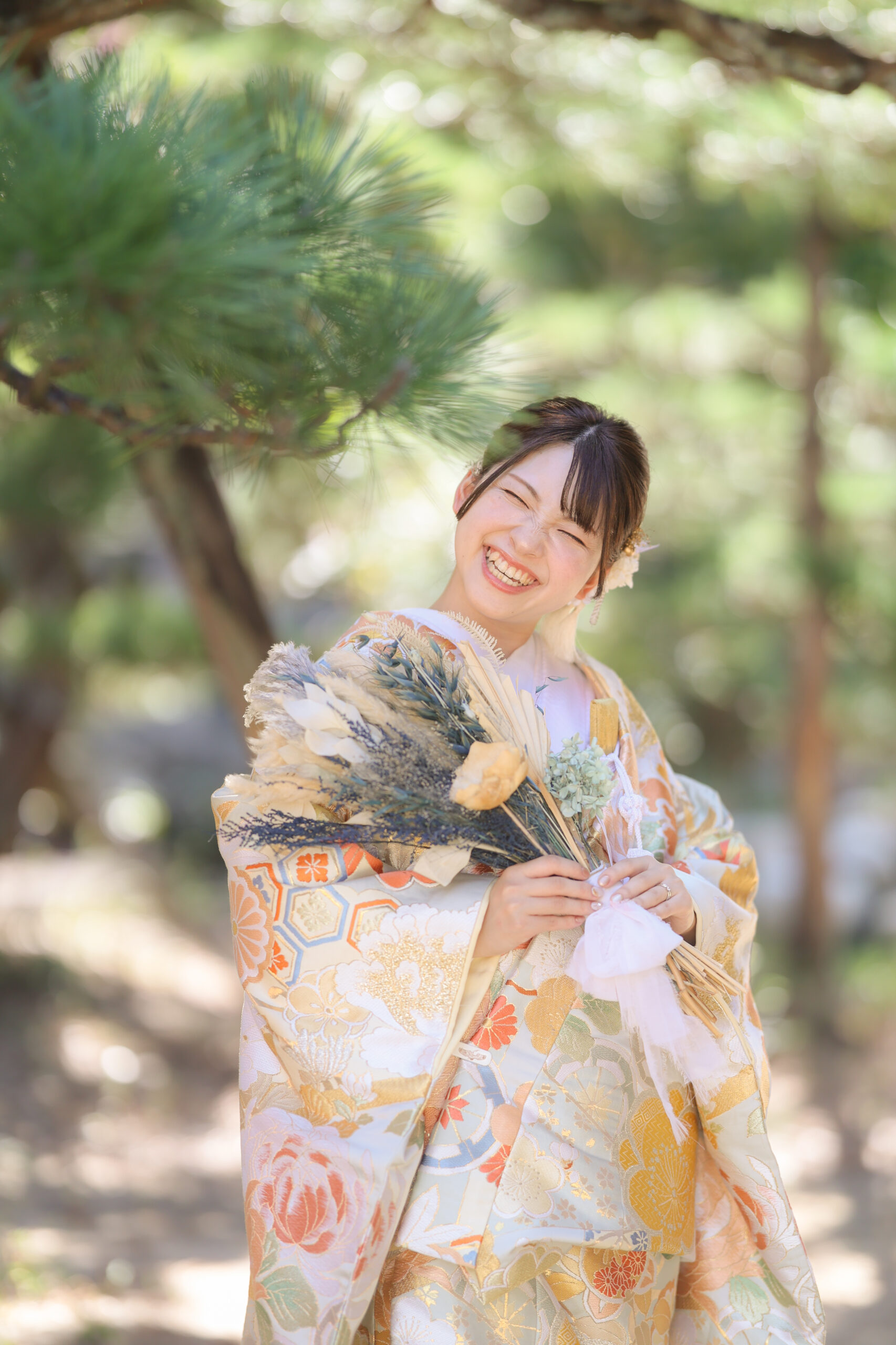 秋の晴天の中で和装姿がとても華やかで爽やかな雰囲気ですね