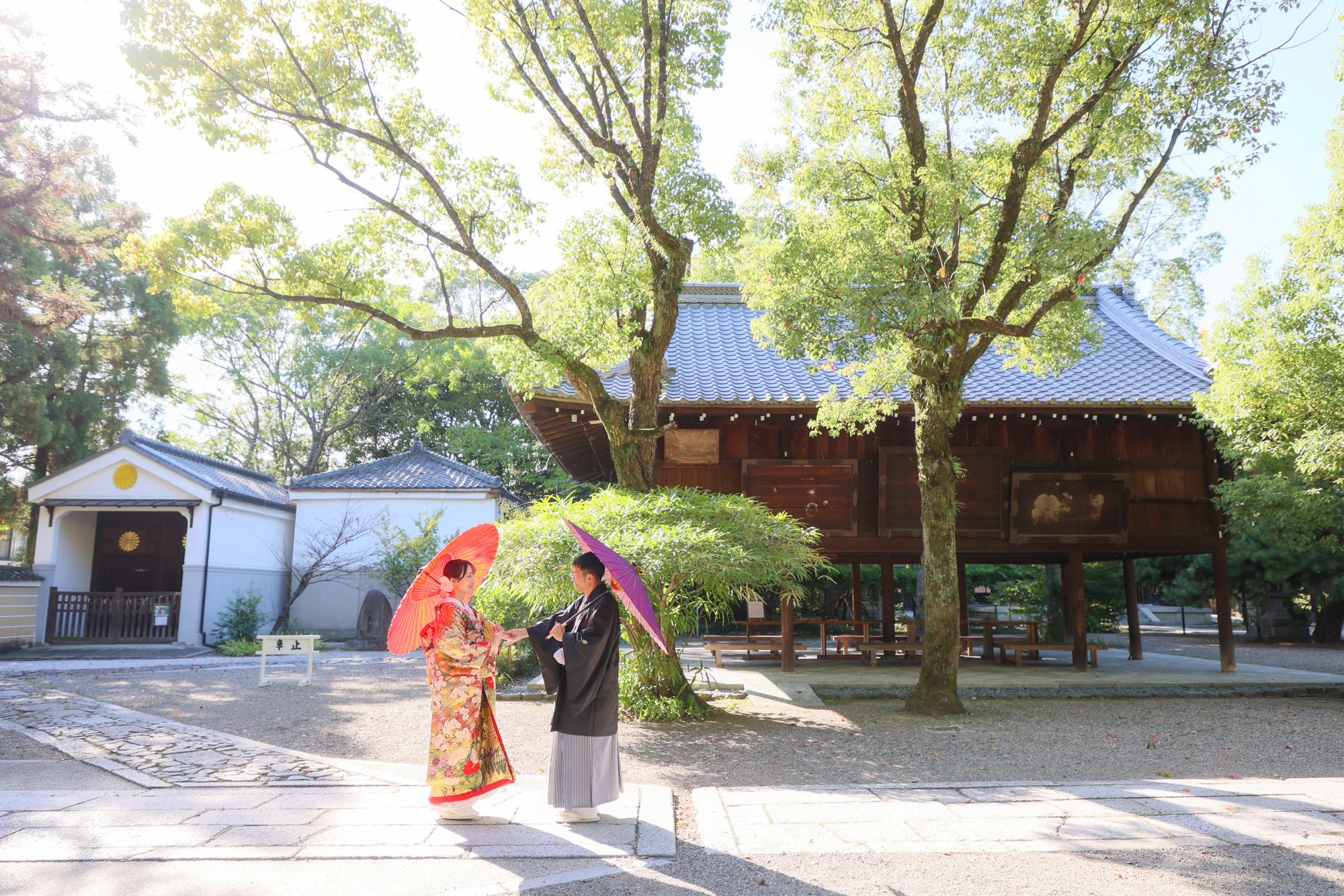 京都のスタジオから和装姿がとても素敵なお二人と撮影の様子です