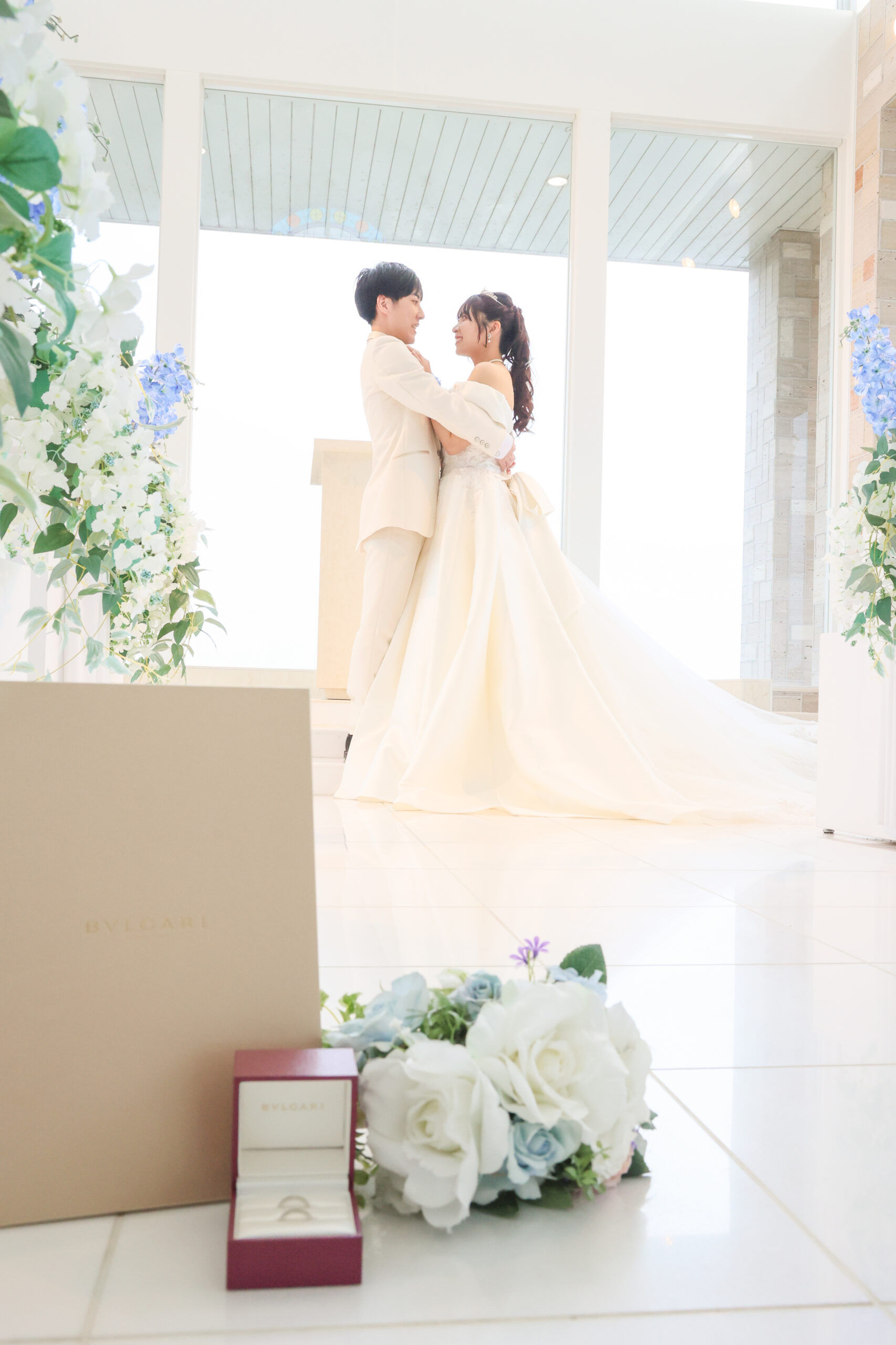 指輪を並べてお二人の明るい未来を感じるショットですね♡♡