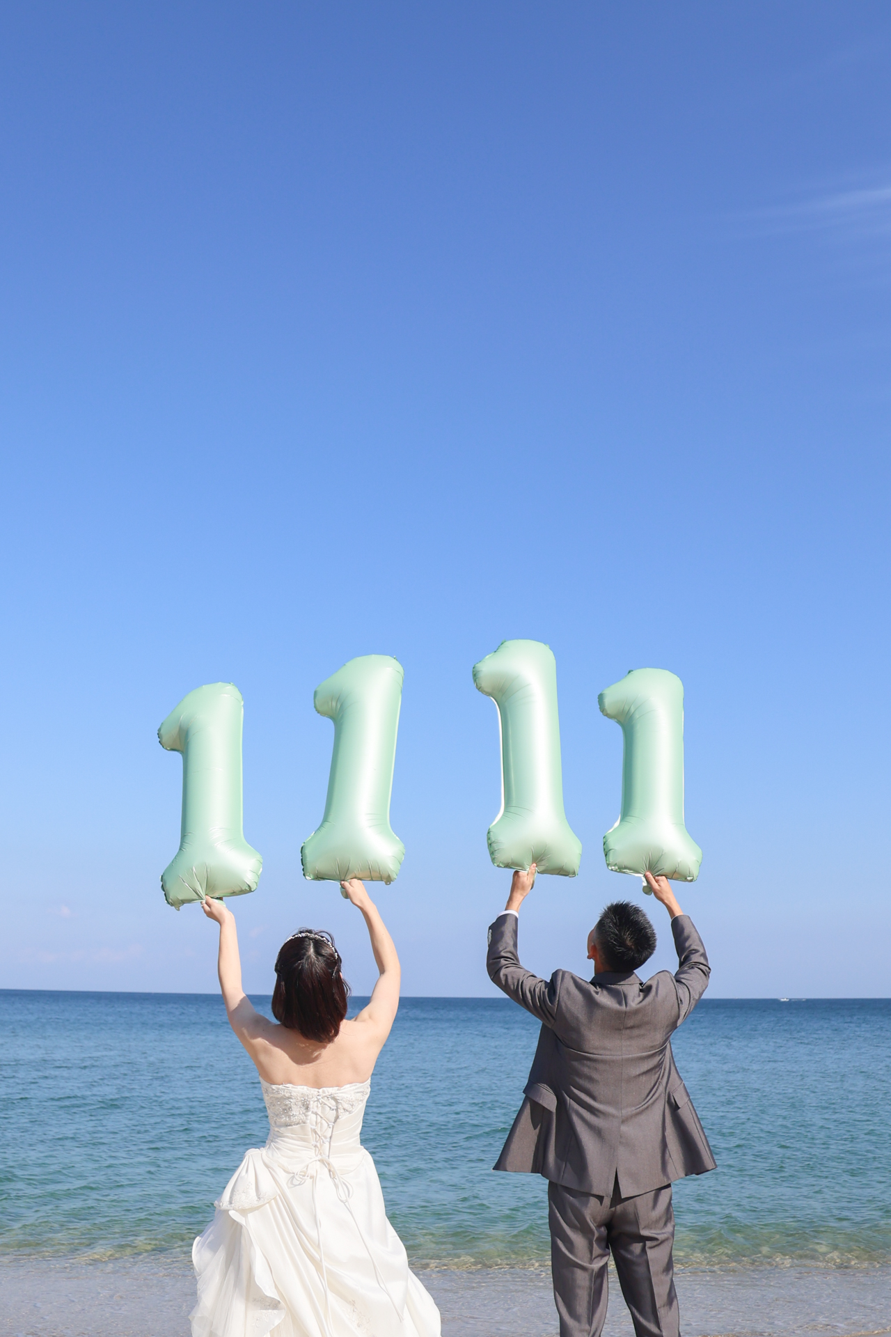 爽やかに晴れたビーチに記念日のバルーンで飾り付け♡