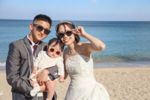 和装スタジオ撮影&ビーチサンセットウェディングドレスロケーション撮影